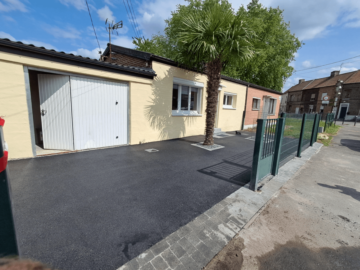 À Douai, pour un client qui souhaitait rénover l’entrée de sa maison, nous avons relevé le défi d’une transformation complète : suppression des corvées de désherbage, réduction de l’entretien et création d’une entrée à la fois pratique, esthétique et carrossable grâce notamment à la pose d’enrobé.