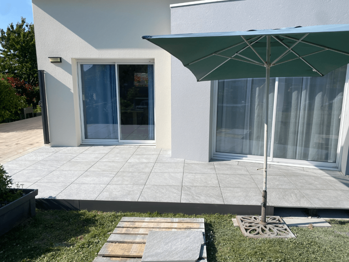 Pour répondre à ses attentes, notre équipe Pérénia près de Lorient a pris en charge la conception et réalisation complète du projet. Nous avons effectué la pose de terrasse en carrelage extérieur, en associant la qualité des matériaux à des finitions soignées afin d’obtenir un résultat durable et élégant.